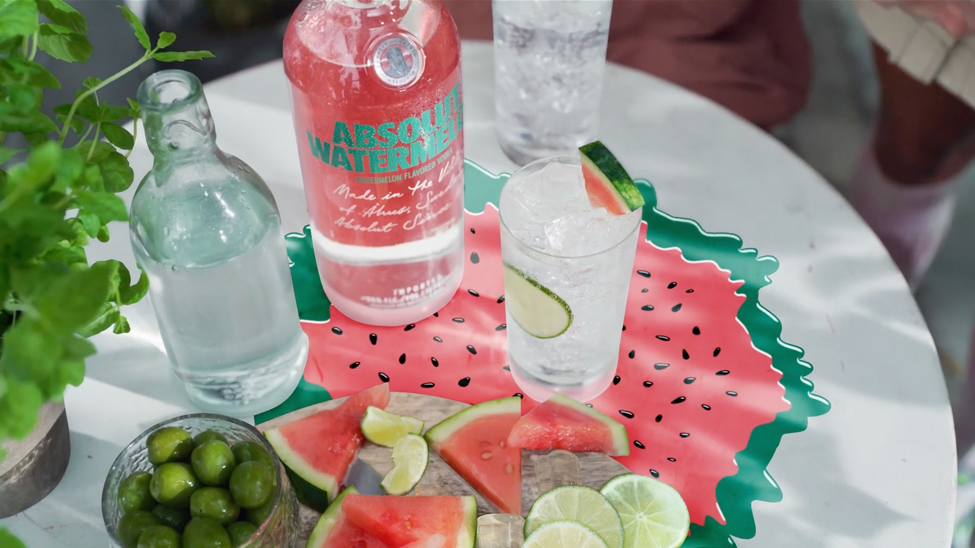 Production art for Absolut Vodka and the Absolut Watermelon campaign, 2020.