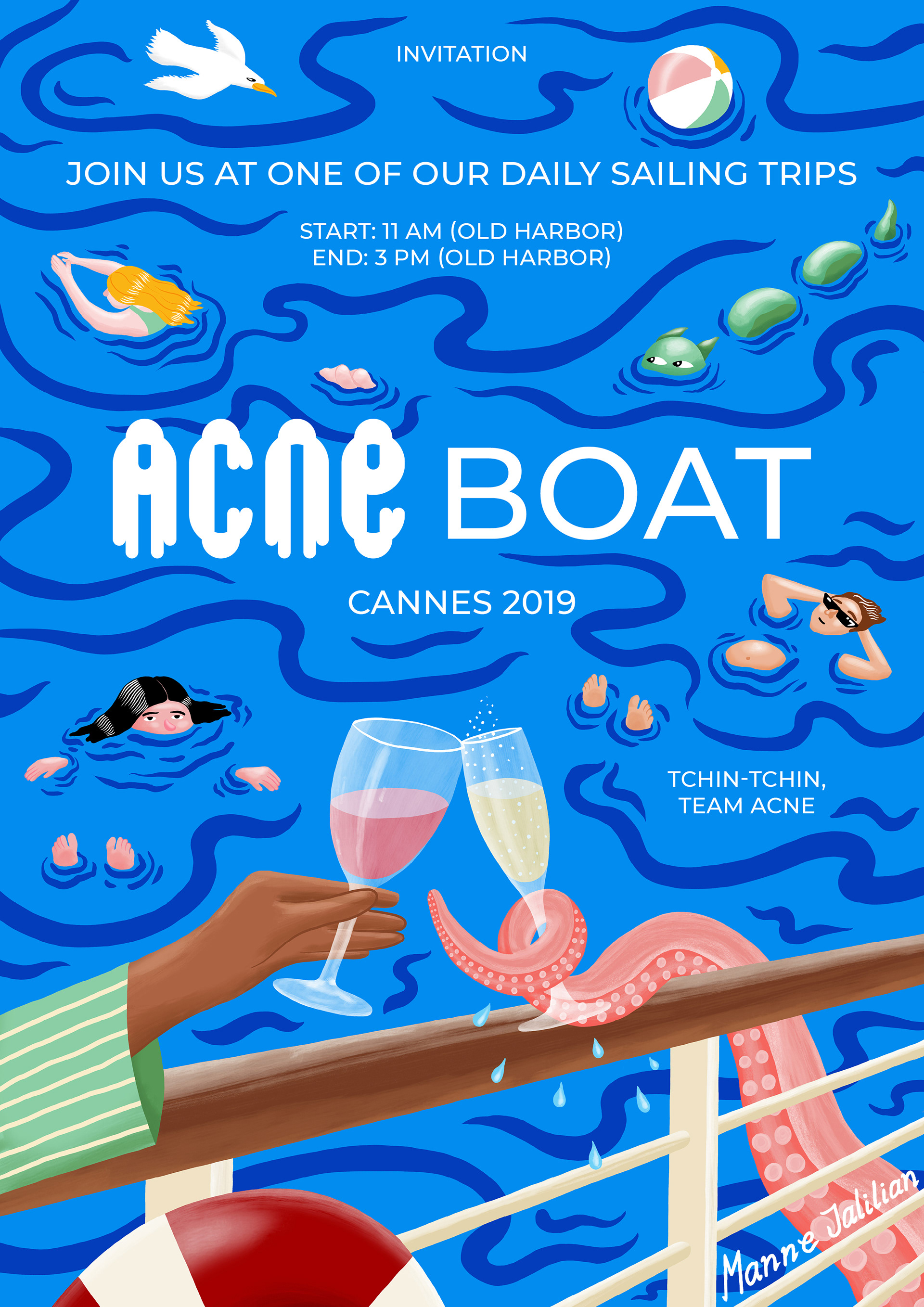 ACNE Boat sailing trip flyer for Cannes Lions, 2019.