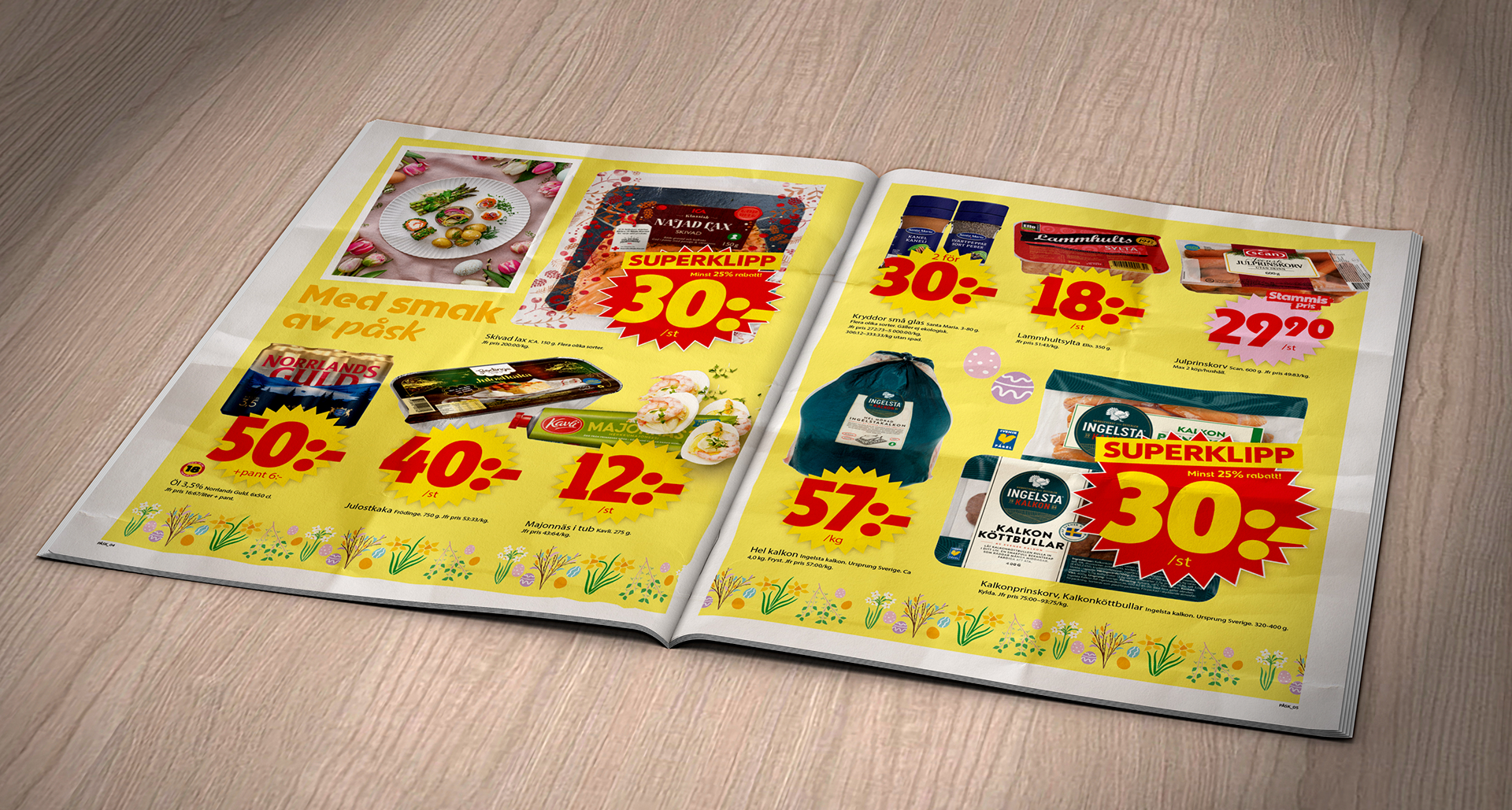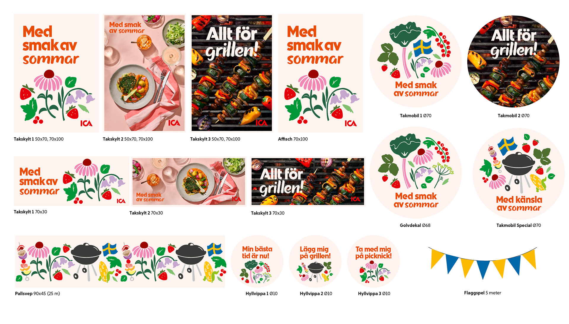 Illustration and design for ICA's seasons: Summer, Barbecue, Easter, Christmas and New Year's eve.